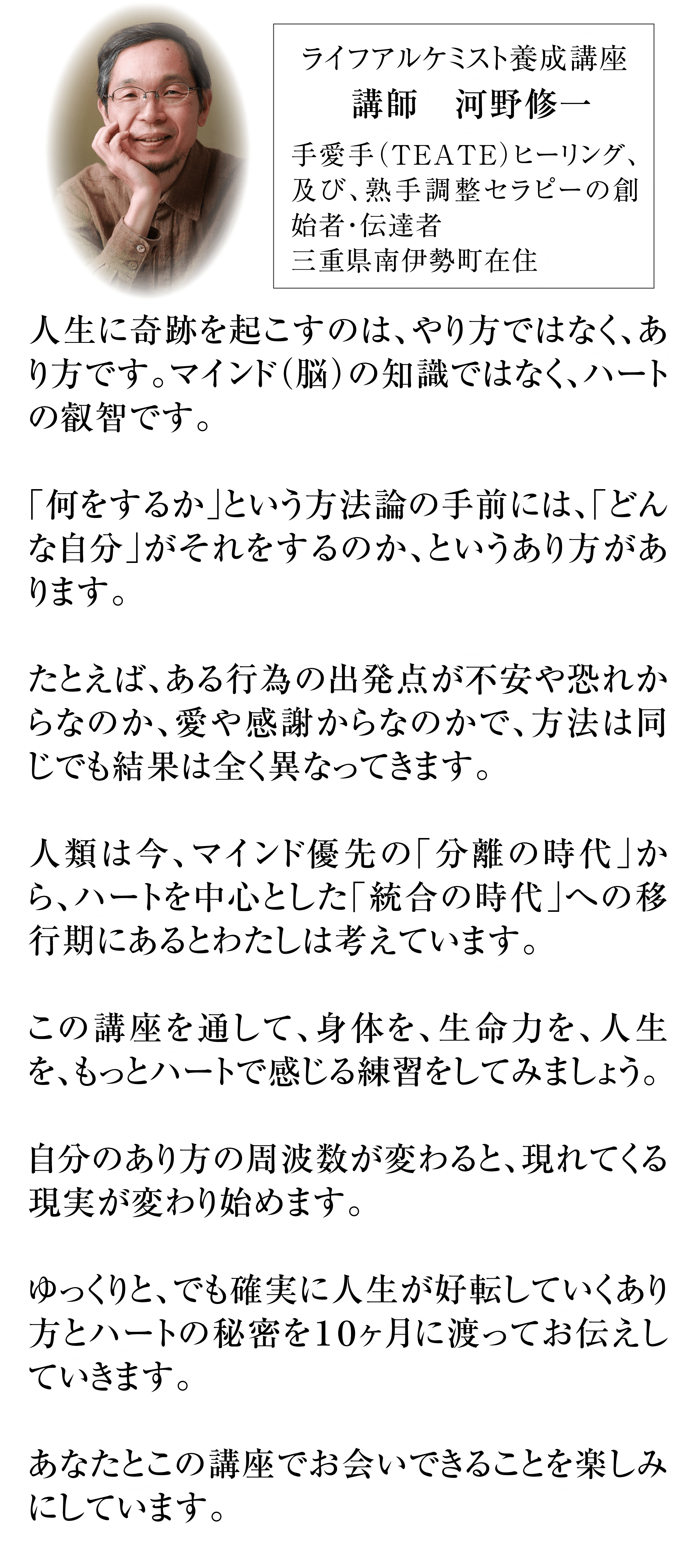 河野先生の講座を受けたことで、日々ハートを意識できるようになりました。